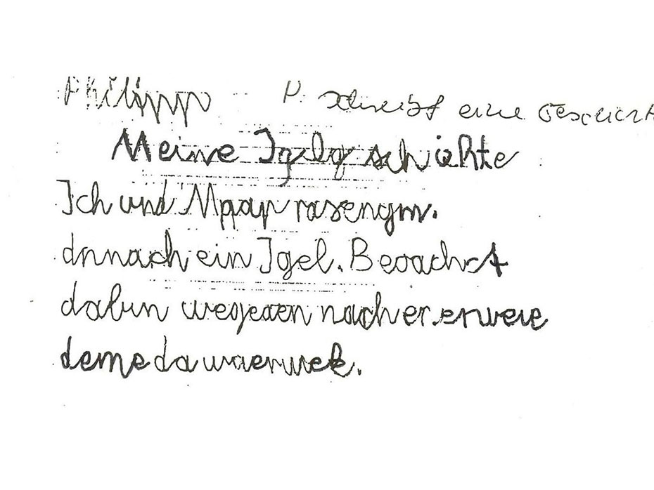 Bitte versuchen Sie, den folgenden Text zu lesen. Er stammt von Philipp, einem Schüler der dritten Klasse.